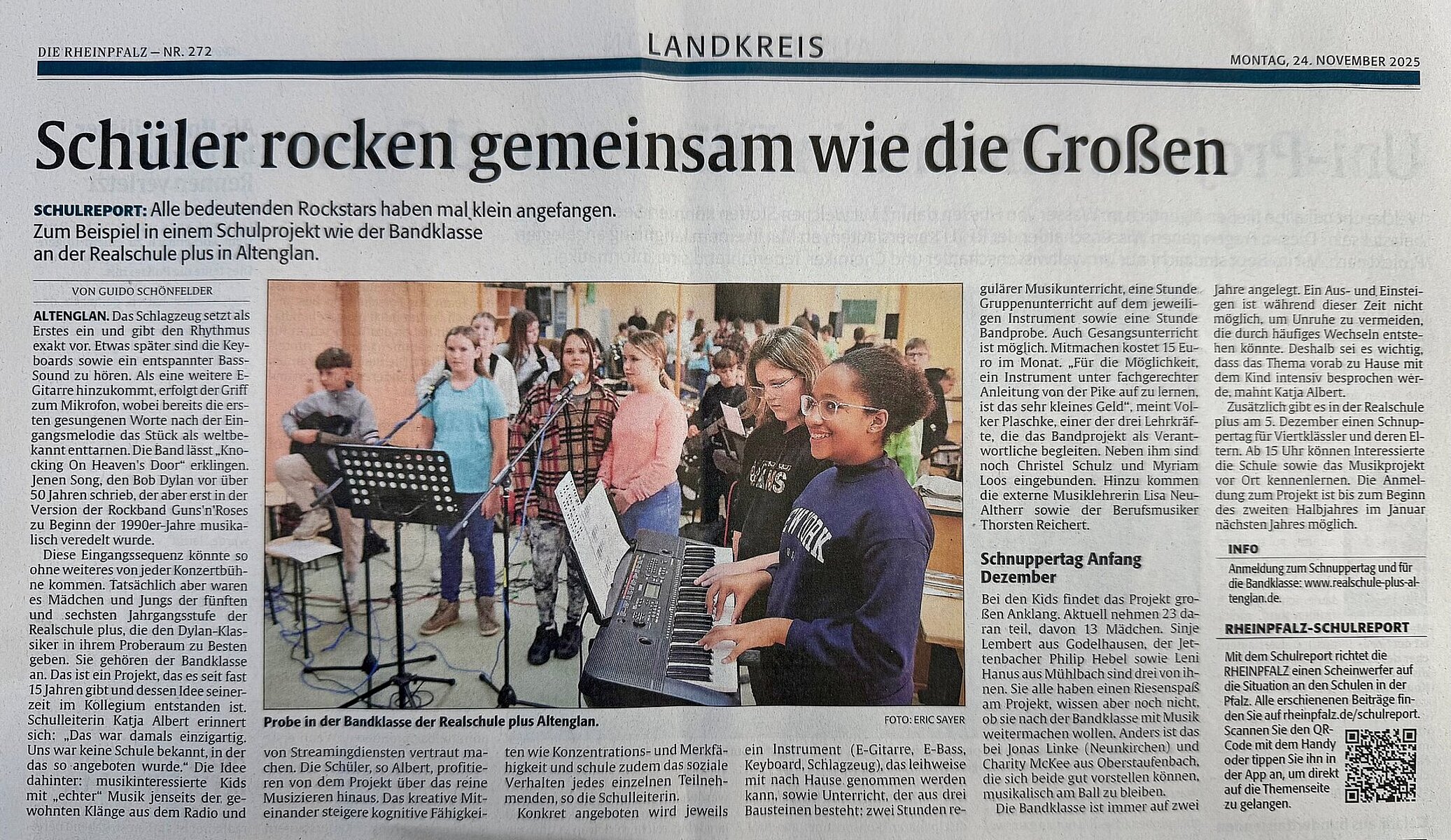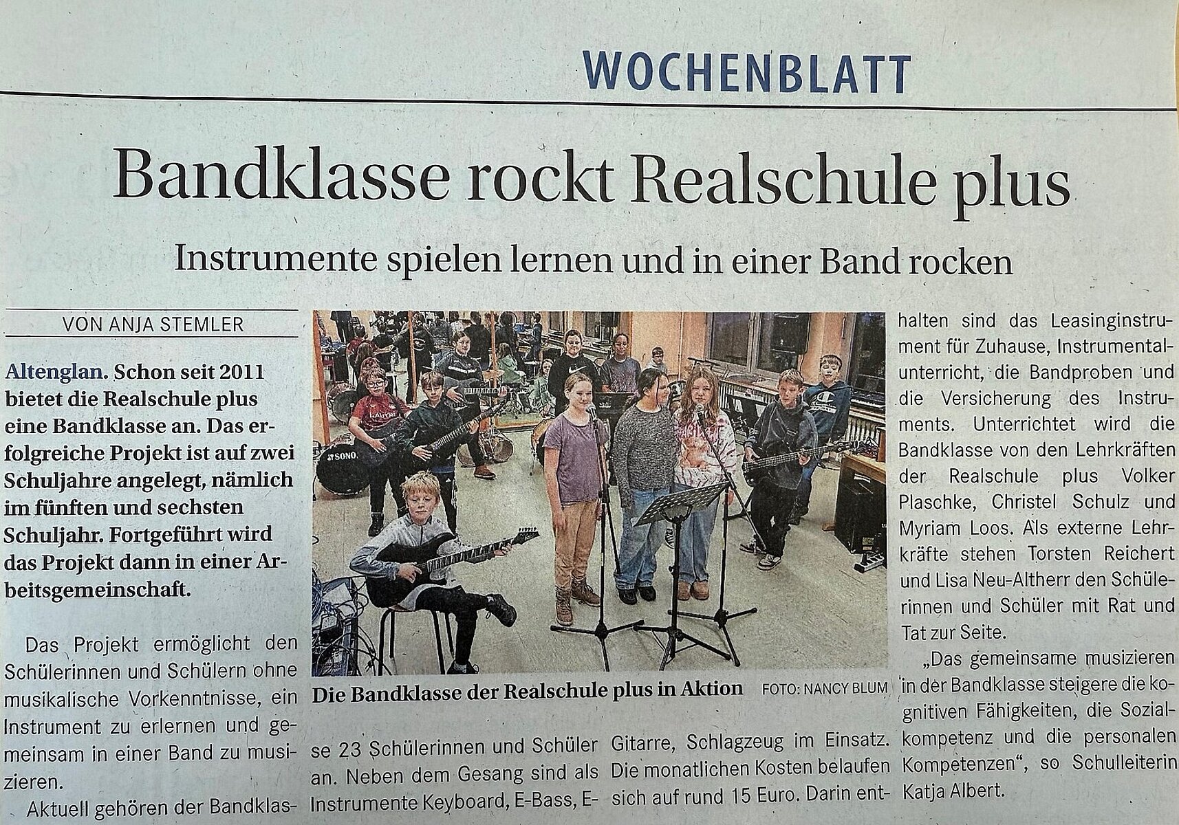 Unsere Bandklasse in der Zeitung