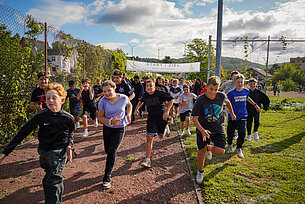 Headerbild Luftballon-Aktion mit Schülern auf dem Schulhof